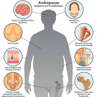 Men can experience their own equivalent of ‘menopause’. Although it is much more gradual than what occurs in women, it can lead to many similar and uncomfortable symptoms like night sweats, insomnia, mood swings and low energy. Andropause is the process a man undergoes when the body produces fewer androgens, male sex hormones. The hormone testosterone is the most affected, and this brings on a collection of symptoms as this hormone is the most dominant and vital for the overall health of a man's body and mind. Testosterone directly impacts many bodily functions and organs, including the Heart, prostate, muscles, Blood sugar, fat metabolism, bone density, libido, and mental cognition. Things like sudden mood changes, depression and anger can also be the result of andropause. According to Culley C. Carson, M.D., of Boston University, School of Medicine, it is estimated that more than 60% of men over age 65 have testosterone levels below the normal values of men in the 30 to 35 age range. Testosterone begins to gradually decline around the mid-thirties and continues. Although the decline is normal, lifestyle habits can create more of a loss, leading to further imbalances and more severe symptoms like sterility, urinary problems and infections, muscle loss, digestive problems, enlarged prostate, weight gain, osteoporosis, and loss of libido.